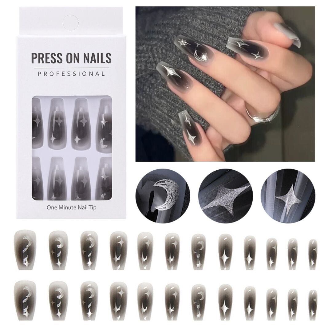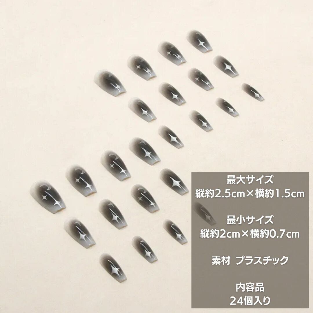 ネイル チップ ブラック ムーン スター 24個入り デコ デコレーション 可愛い おしゃれ 映え 韓国 韓流
