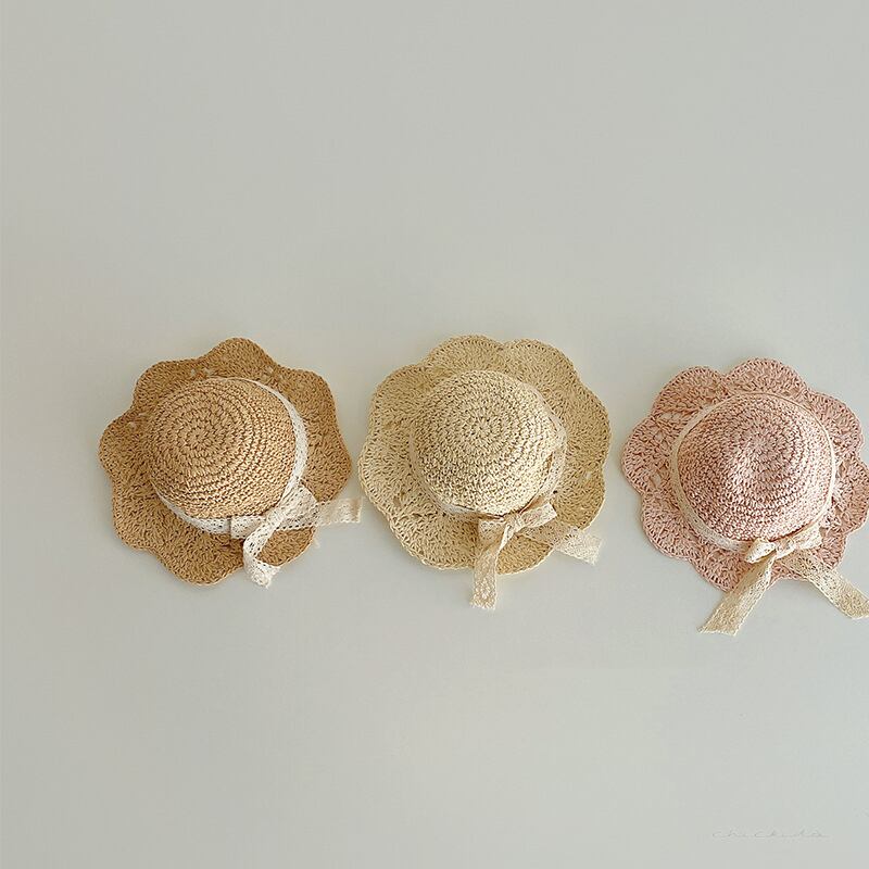 ベビー帽子 キャペリン レースリボン カンカン帽