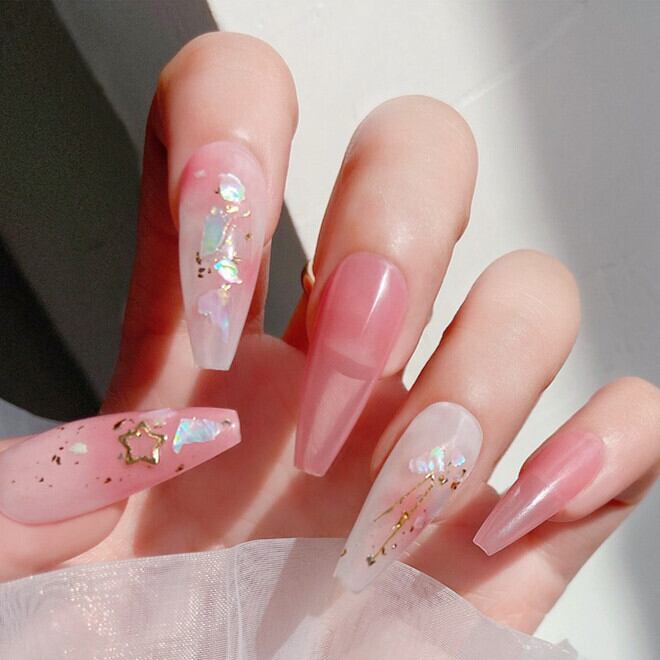 シアー効果のジェルとの利用で、シェルグラデが綺麗に見えます。