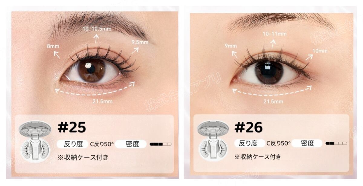 ナチュラルデザイン: 自然なカールとボリュームで、目元に華やかさをプラスします。普段使いから特別な日まで幅広く活躍します。