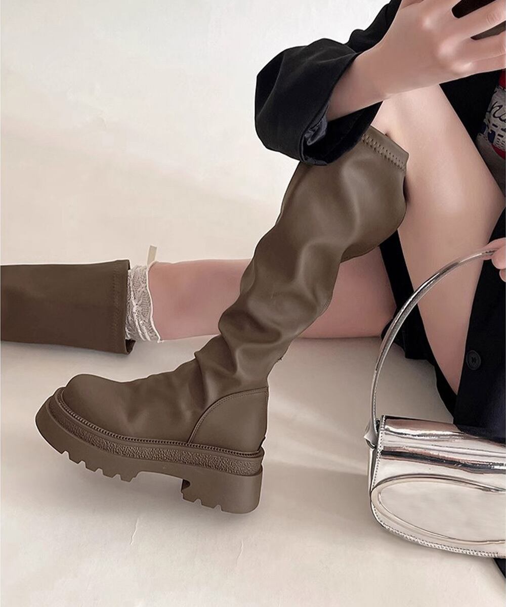 レディース おしゃれ トラックブーツ プラットフォーム 履きやすい 膝下丈 ニーハイブーツ ボリューム感シューズ 韓国風